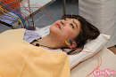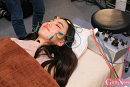 田辺さんと黒木さんは顔に刺した鍼に電流を流す療法を受けた。黒木さんは「初めてなので、最初は痛いのかなと思って怖かったのですが、やってみると気持ちよくてウトウトしてしまうほどでした」と笑顔だった。