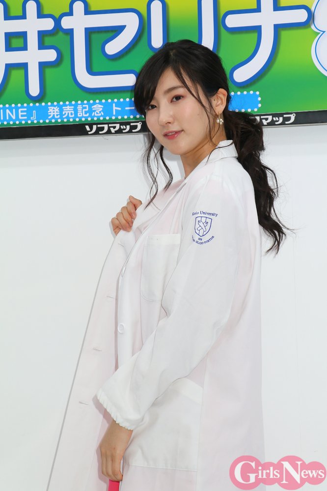 現在、慶応大学の薬学部に通いながら、グラビアや、ニュース動画サービス『News MagVi』でキャスターとして活躍している福井さんは、普段実験などで使っているという白衣で登場した。