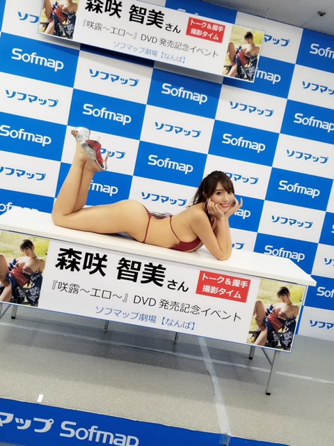 グラビアアイドルの森咲智美さんがDVD『咲露~エロ~』の発売記念イベントを26日、大阪・ソフマップなんば店 ザウルス1で開催した。