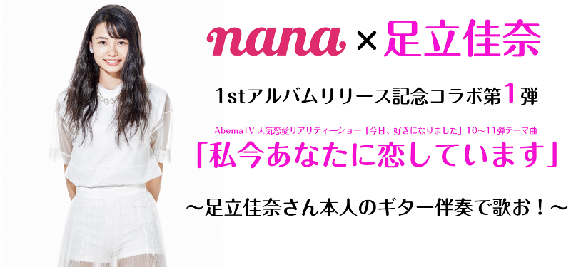 ユーザー数600万人、アプリ内累計楽曲再生数22.8億回超の「nana」。まずnanaでのコンテスト企画第1弾として『私今あなたに恋をしています』の歌唱企画が11日よりスタート(31日までエントリー受付)。ユーザーは「nana」限定で公開される足立さん本人のギター伴奏音源を使い、本楽曲を歌うことでコンテストにエントリーできる。