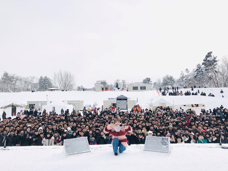 9日には旭川の冬まつりに出演。雪像の大きさにびっくりしつつも、大勢集まった観客を前に、「こんなに沢山の方に観ていただいて大変うれしいです。寒いですが皆さんに温かく迎えていただいて気持ちが温かくなしました」と感激を表した。