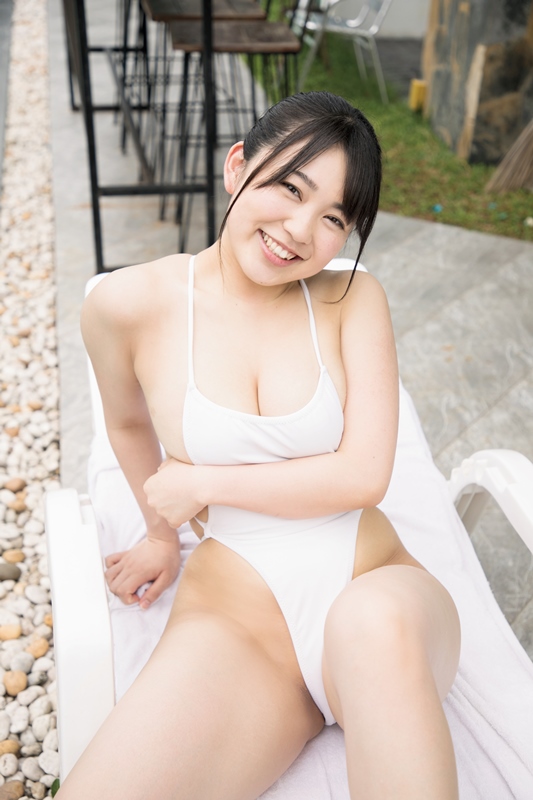 5月頃タイのパタヤで撮影された本作は、卒業旅行で彼氏と海外へ行くストーリーになっている。特におすすめシーンと衣装は「プールで着ている白の変形水着と、メイド服が今回凝っているのでお気に入りです。特にメイド服のお腹のぷにぷにがいい感じに……」とのことだ。