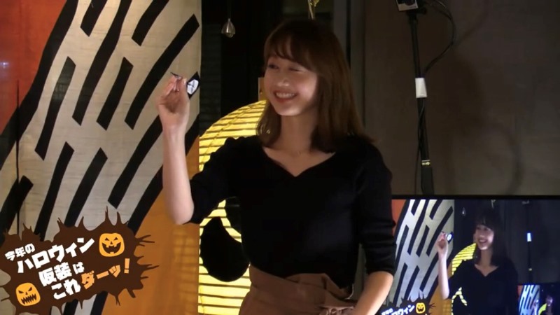 一通り振り分けが済むと、出演者の3名はそれぞれダーツを投げ、高田秋はNHKの人気番組のキャラクター「チコちゃん」に、大矢梨華子は人気映画「ジョーカー」に、碓井玲菜がラグビー日本代表・リーチ・マイケル選手にそれぞれ仮装することが決定した。