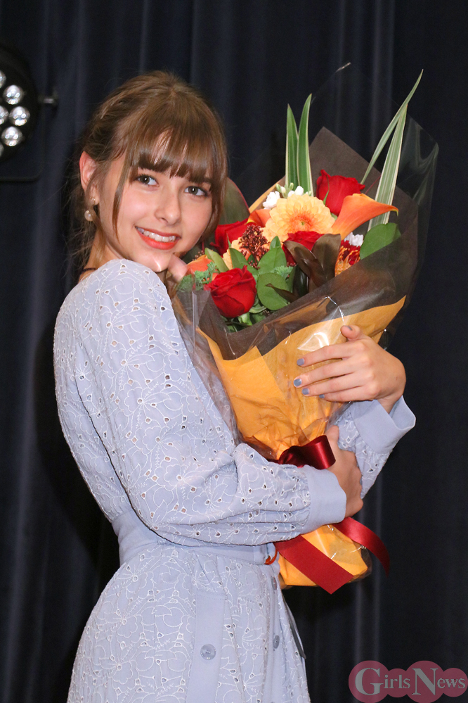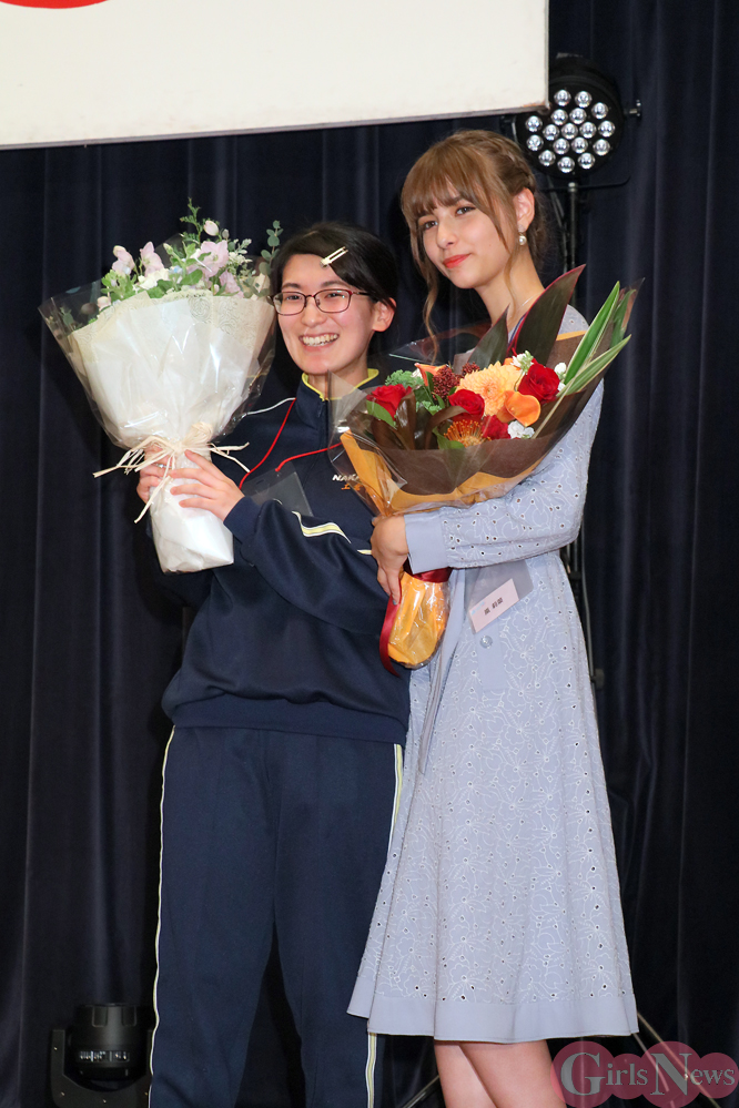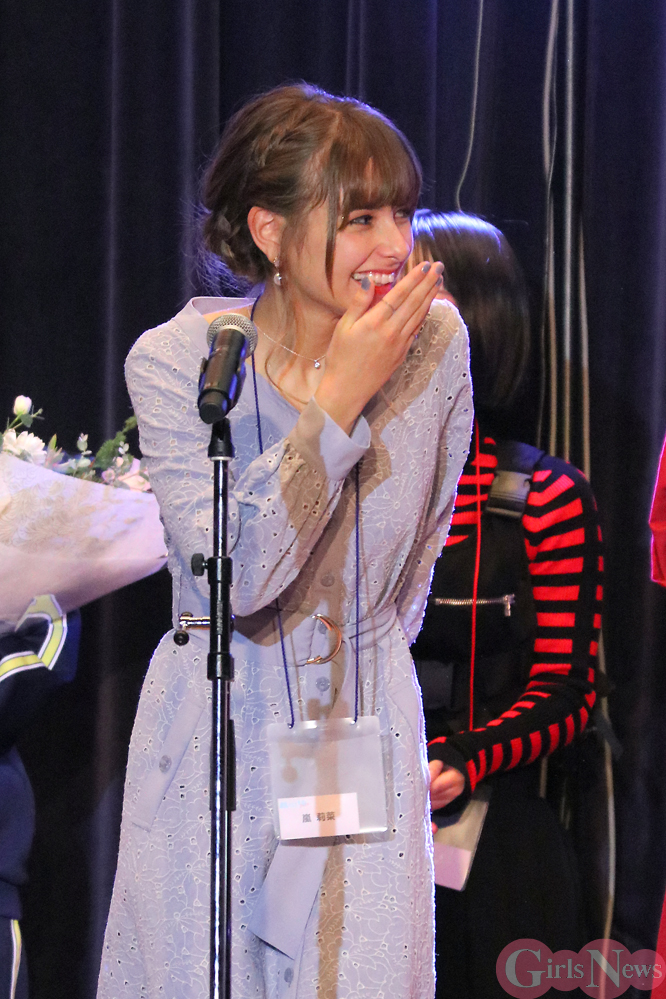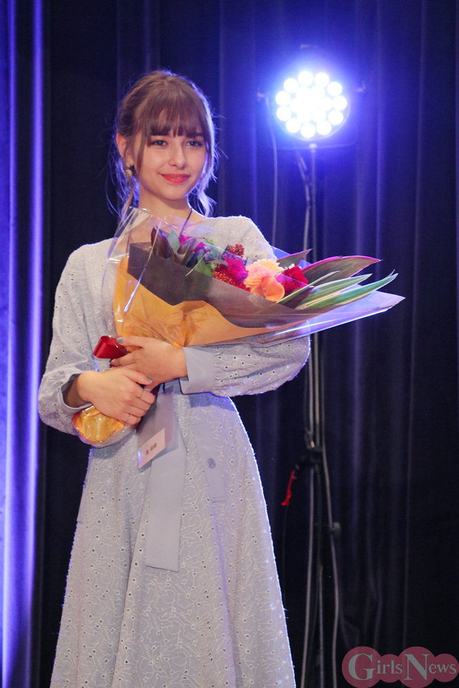 この日集まった120名弱のファイナリストの中からグランプリに選ばれた嵐莉菜さんは、イラン・イラク・ロシア・ドイツ・日本の5カ国の血が流れるハイブリッドガール。「ミックスっていうのか、雑種っていうのか、分かんないんですけど…」と笑顔で紹介しつつ、「日本と世界の架け橋になるモデルになりたいし、女優にも挑戦したい」と、これからの活動に向けて意気込みを語った。