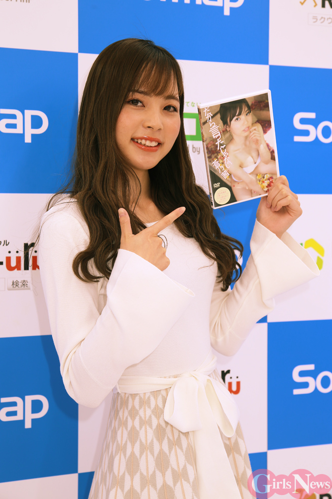 5月末にバリ島で撮影された本作について「初めてのDVDということですごく勇気が要ったんですけど、爽やかに撮っていただいて、どなたでも見ていただける内容になっています」と紹介。“彼との南国旅行”がテーマで「一緒に旅をしている気分になってもらえたら」と出来栄えに満足げ。