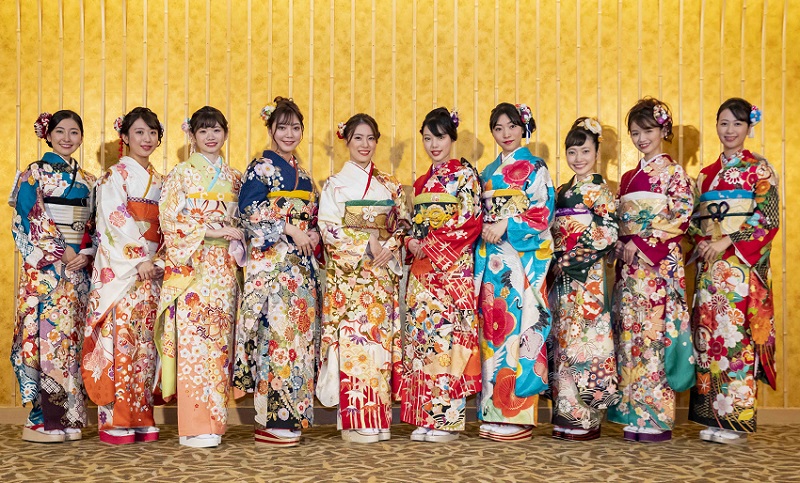 芸能事務所「スペースクラフトグループ」がプロデュースする主要大学のミスコンファイナリストを中心にした現役女子大生ユニット「キャンパスクイーン」が、東京・八芳園にて晴れ着撮影会を開催。メンバーの中から選抜された10名(歌倉千登星、中村美紅、本田依里佳、野島詩織、松田絵里沙、牧村里奈、橘穂奈美、末井櫻子、三関紗彩、梶愛海)が艶やかな晴れ着姿を披露した。