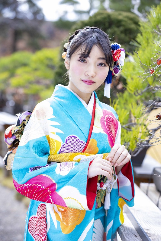 大学の近くに八芳園があったのに、今まで入ったことがなくて。こんなに緑あふれるところなのかと驚きました。着物でこんな素敵な写真を撮っていただいて。一生の記念になります。2019年は、テレビ番組に出させてもらったり、グラビアに挑戦したりと、本当に貴重なことを経験させてもらえた1年でした。将来はやはり芸能活動をしていく目標がありますし、この1年が勝負だと思うので。2020年は色々な分野にチャレンジしていきたいなと思っています。