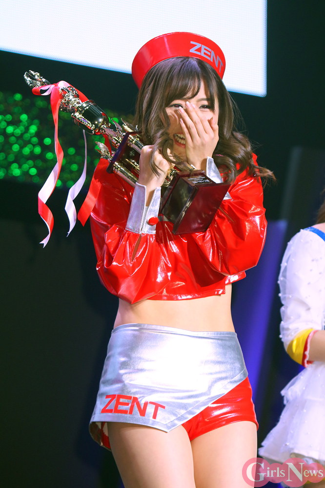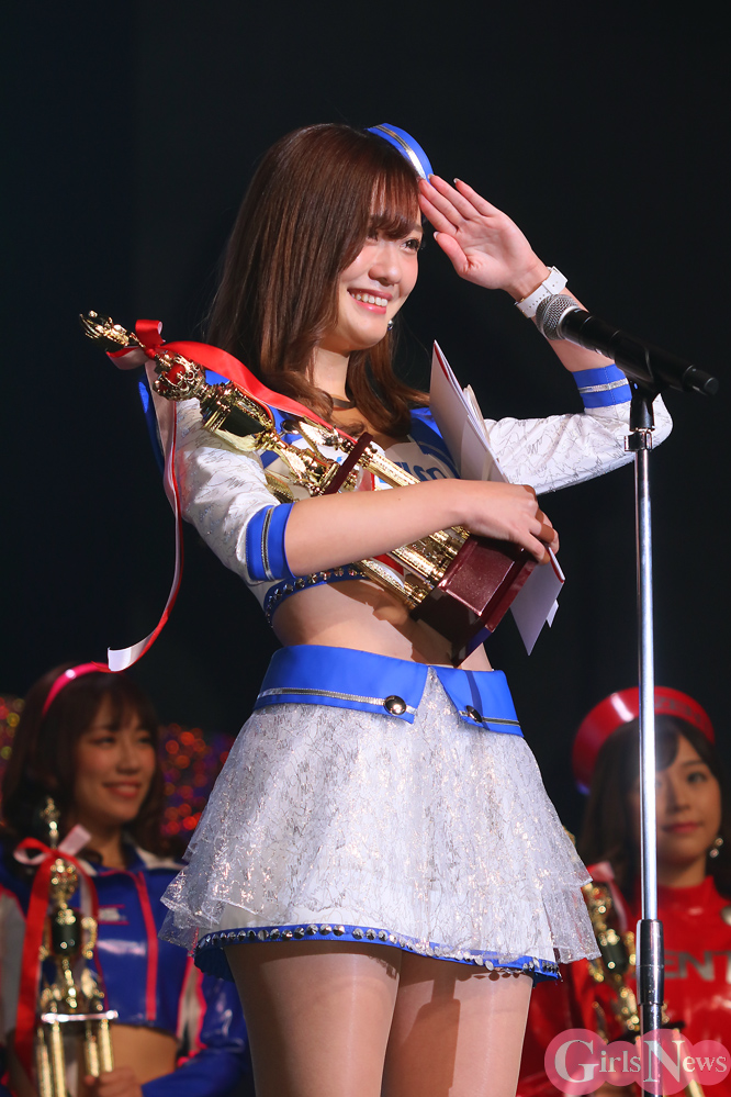 トロフィーを受け取った川村さんは涙をこらえながら、「皆さんの想いが詰まったこの日本レースクイーン大賞で、10人目のグランプリとしてこのステージに立てることがとても幸せです」と喜び、チームとして、初の大賞グランプリに輝いたほか、新人部門準グランプリとコスチューム部門グランプリを合わせ、3冠を達成したことに感謝した。