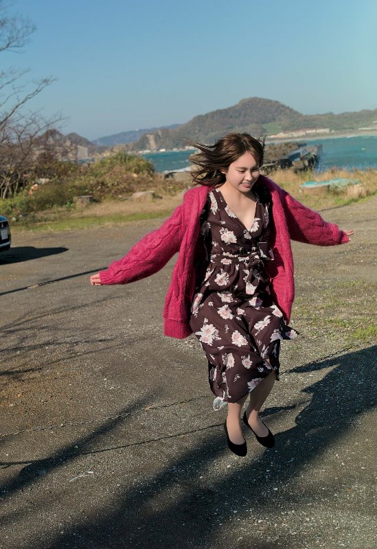初グラビアとなった今回は、彼女の目力や柔らかな肌の白さが際立つカットがふんだんに掲載されている。今回の案内人(美女地図グラビアを解説する役)は先輩の筧美和子が務め、「目と肌に吸い込まれそうになる」と大絶賛した。