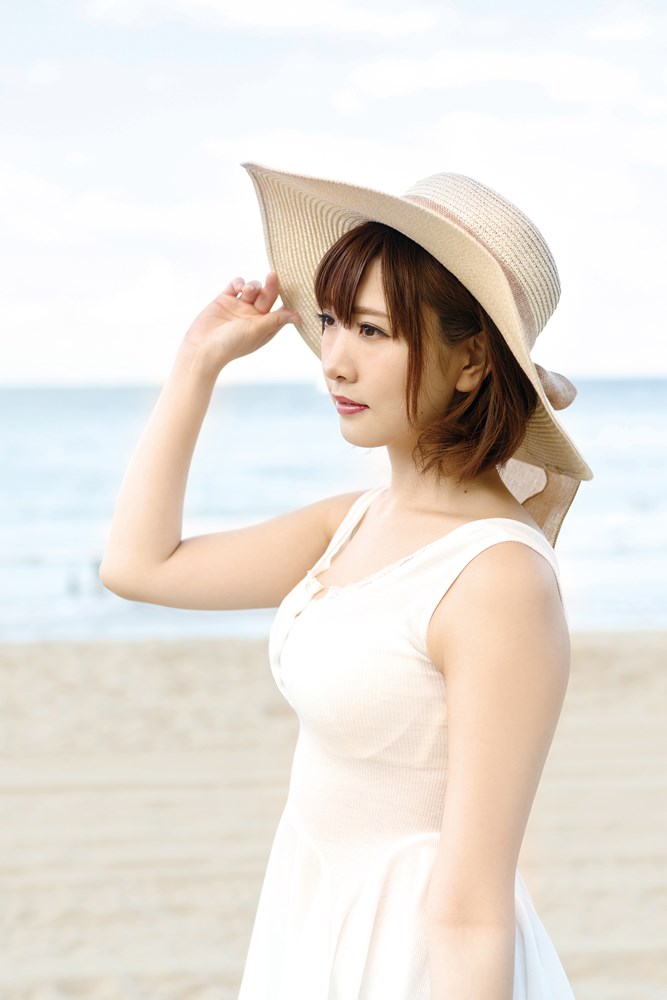 おすすめは「狐の耳が生えているシーン」で、お気に入りの水着は青ビキニ。浜辺のシーンでは水着から溢れそうなHカップバストが堪能できる。「自分の水着を持っていないくらい着ないので新鮮です」と言い、「コスプレではキャラクターのポーズで決めるんですけど、DVDでは笑顔で自然なポーズを取らなければならないのが大変でした」と振り返った。