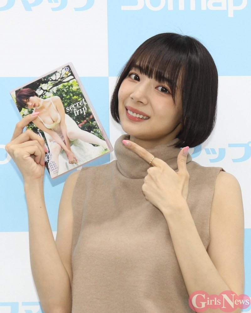 「今回はイメージというより写真集のメイキング中心」というDVDの内容について「もんじゃ焼きに入ったりネコカフェに行ったり、まったりとしたDVDになっています。袴を着て街を歩いたり、私とデートしている気分にひたって欲しい。DVD用に撮ったバーのシーンが黒い衣装から展開していちばんセクシーです」と紹介。