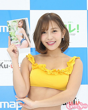 DVDの内容について「ピンク色の水着のシーンは天気が良くプールで自然な表情が出ていてお気に入り。紫色のハイレグ衣装は似合うかな?と思って着ましたが、けっこう似合っていました。セクシーなシーンは朝のベッドのシーン。自分で見てワォ!って思いました。彼に『腹筋にいいから』とダンベルを渡されて運動しますが、どうみても胸が揺れているだけで腹筋に効いていない(笑)。セクシーというより恥ずかしかった。最後に特典映像として自分で振付をしたダンスが入っています」と紹介。