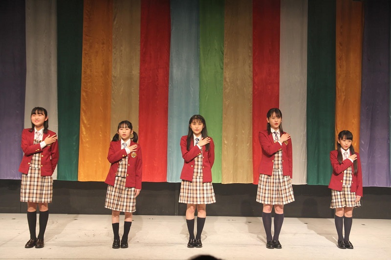 初日となる26日の公演は発表ごとが続々。まず新入生となる2020年度生が発表され、井上和奏(12)、入江華音(12)、高岡星咲(15)、廣岡実夢(15)、三塚花梨(12)がステージに呼び込まれ、ファンの前で元気いっぱい挨拶をし、新入生代表として井上和奏が「2020年度生として入学した今、まだ経験もなくいろいろと追いついていないところもありますが、先輩たちと同じ舞台に立ったからこそ、きちんと自覚をもち、頑張っていきたいと思います!」と力強く宣誓した。