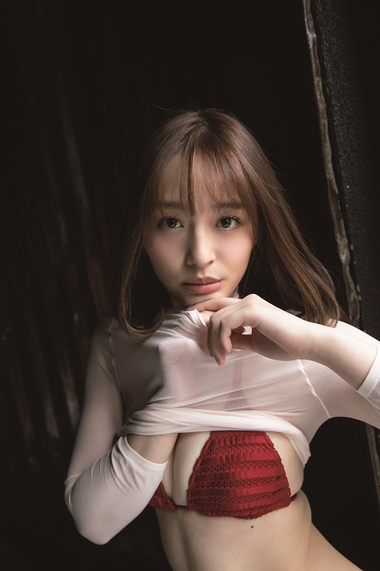 神部さんは撮影を振り返り「普段着ないような衣装を用意してもらったり、少し暗めのハウススタジオで撮ったり、今までにない雰囲気のなかで撮影したので、どんな仕上がりになるのかワクワクしてました!」と語る。特にお気に入りの写真については「手で胸を隠してる写真ですかね。なんだかボリュームが自分のものじゃないみたいで。。」と笑った。