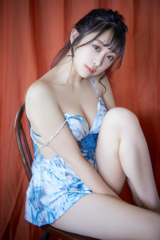 特にお気に入りの衣装については「2コーデの水着で撮影していただいたのですがどっちもとてもお気に入りです! 1着は薄ピンクの下着と可愛いレースのカーディガンそして毛先だけゆるっと巻き髪でふわっと色っぽい可愛い印象、もう1着は夏っぽい軽い素材のミニなワンピースにポニーテールで爽やかで元気な印象もあればアンニュイなショットも撮っていただいたので皆さんに見てもらえるのがとても楽しみです」とコメントしている。