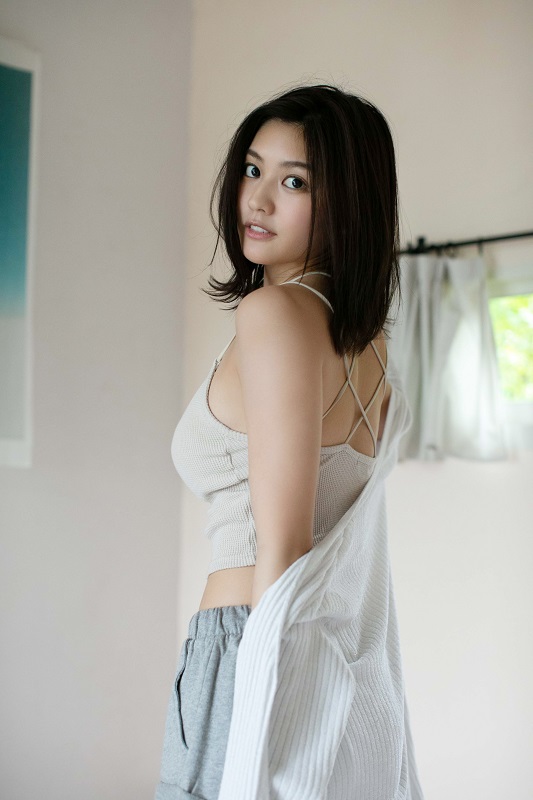 今回のグラビアではスタイリッシュな肢体と大人の魅力を存分に見せている。特にお気に入りの衣装については、「もちろん全部可愛い衣装だったのですが、プールのところで来た白