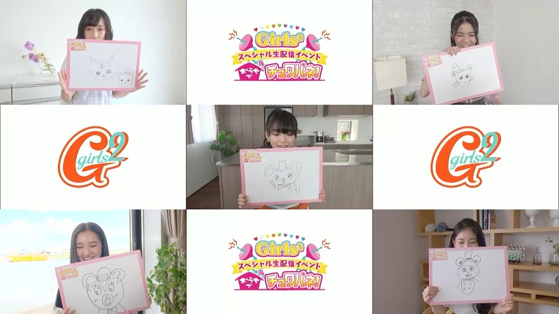 そして突如始まった、ゲームコーナー「Girls²でお絵かきがいちばん上手いの、だーれだ!?」では『ひみつ×戦士 ファントミラージュ!』に登場するキャラクター「くまちぃ」のイラストを全員が披露。個性溢れるイラストに、メンバー同士で突っ込み、笑いが絶えない時間となった。画面の前のファンからも、SNSを中心になかなか見ることができないメンバーの素の姿に喜びの声が上がっていた。