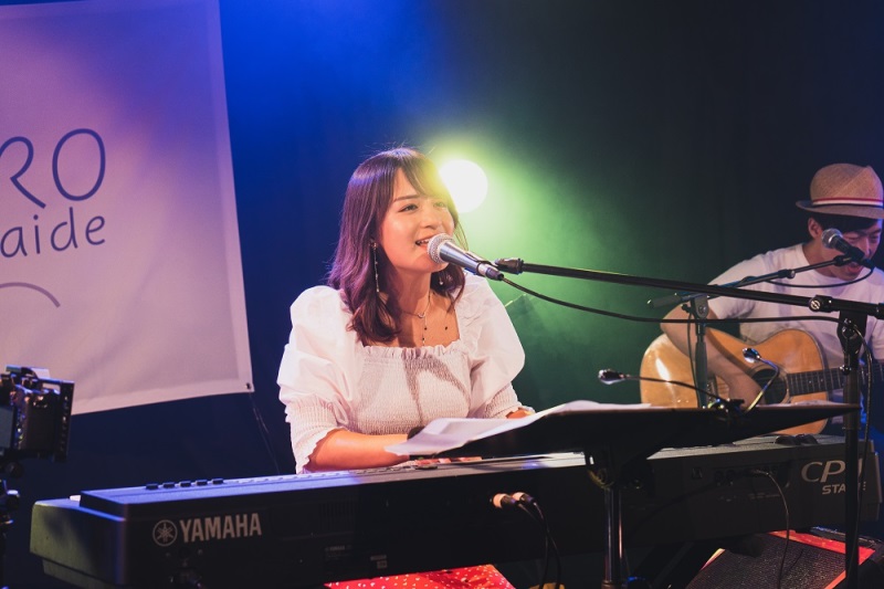 ライブの後半、夏らしく・女性らしい黄色のワンピースに身をまとった衣装に着替え、一気に“大人”を感じさせるビジュアルに変わった山出さんは、4月にリリース後、コロナ禍で披露できていなかった4thシングル『ピアス』を満を持して初披露した。