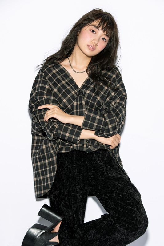 「今回はいつもの撮影より、さまざまなパターンのメイクをしました!ヘアも前髪をなくしてスタイリングしたり、秋っぽく大人っぽい感じで撮影したので、20歳らしく居られて何だか嬉しかったです」と撮影を振り返った黒木さん。特にお気に入りは「ブラウンのチェック柄のお洋服を着ているときのショットです。なんだか新しい感じでとても気に入っています!」と語る。