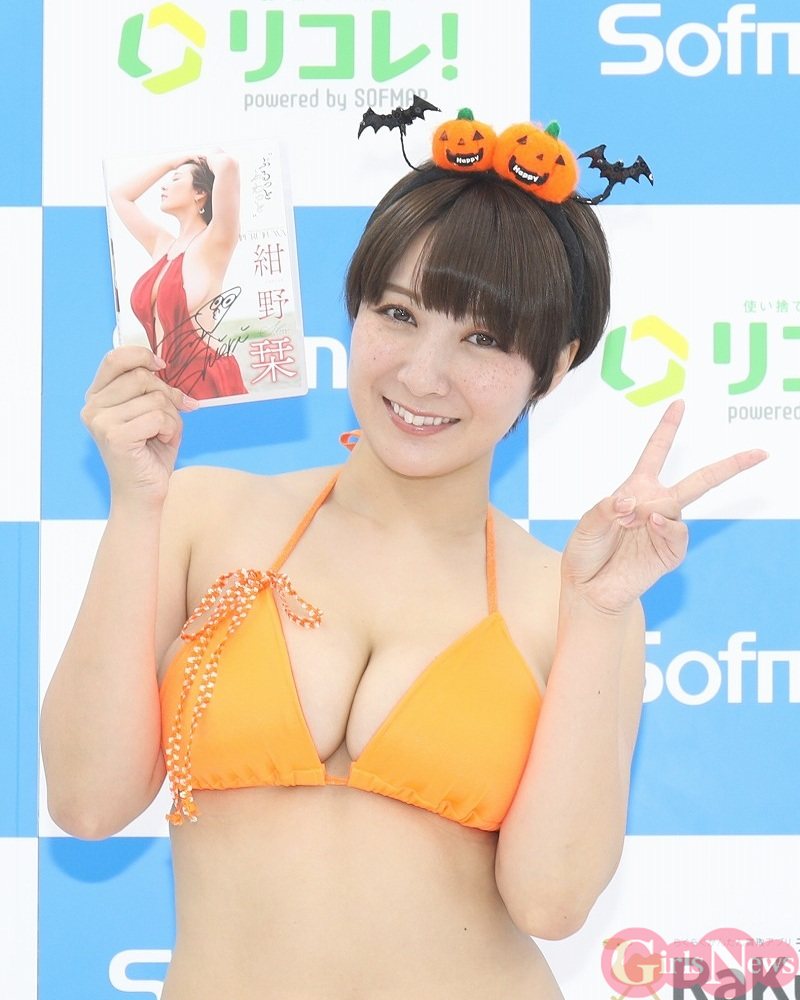グラビアアイドルの紺野栞さんがDVD『ぷるっとふわっと』の発売記念イベントを先月31日、ソフマップAKIBA(1)号店サブカル・モバイル館で開催した。