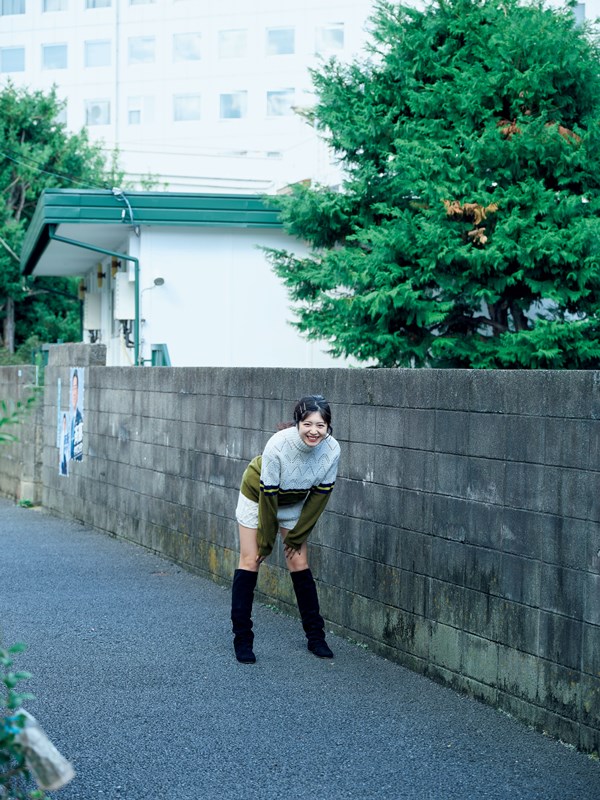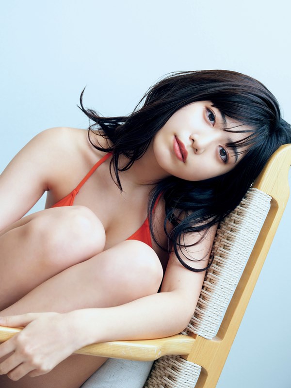 表紙では赤の水着に今までにない大人らしい表情で登場。誌面ではシンプルな水着でのお部屋グラビアにニットとニーハイブーツを身にまとい自然の緑とマッチしたカットも掲載されている。