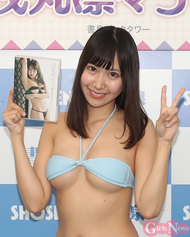 “副業グラドル”として話題のグラビアアイドル・戌丸凛々子さんがDVD『隣の凛々子さん』の発売記念イベントを21日、書泉ブックタワーで開催した。