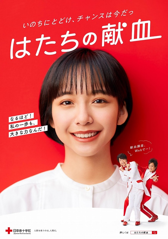 日本赤十字社は、「はたちの献血」キャンペーンを、令和3年1月1日~2月28日まで全国で展開。またキャンペーン開始当日より新CM「献血チャンス到来」篇、「今こそ必要」篇を、全国にてスタートする。CMでは山之内すずさん演じる大学生のもとに、ぺこぱが演じる“献血妖精”が突如現れ、“It’s献血チャンス!”の合い言葉とともに、献血の必要性を伝える。