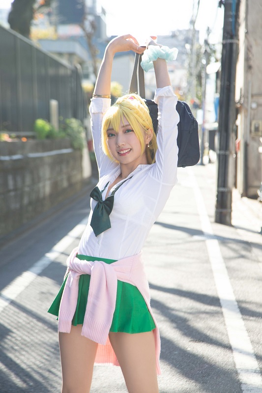 撮影を振り返り、霜月さんは「コスプレでのグラビア撮影はあまりなかったので、めちゃくちゃ楽しかったです!! リアルな学校での撮影だったんですが、青春っぽくてとてもテンション上がりました!(笑)そして一番嬉しかったのは、作者の植野先生も撮影現場に来てくださったことです!漫画も楽しく読ませていただいていたので感激でした…!」と喜びを表した。