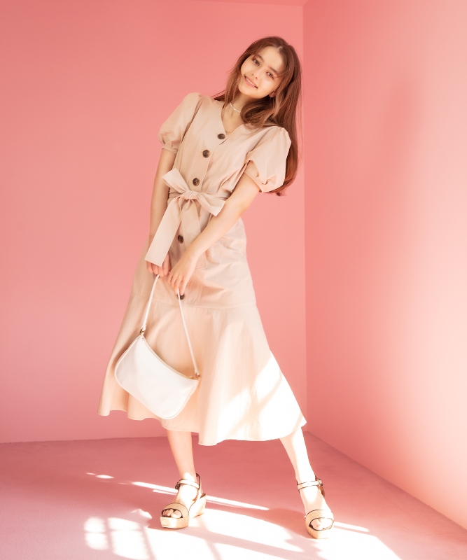 「L’DEZA」は嵐莉菜さん本人自らブランド名やコンセプトを考え、ZOZO とともに展開するオリジナルブランド。自身が同世代~ViVi 世代に向けてつくった、かわいくて、大人っぽくて、ちょっぴりレトロな洋服たちは、おしゃれを気軽に楽しめるアイテムとして、手の届きやすい価格帯ながら、「高見え」「大人見え」が叶うアイテムになっている。今回は、「ウエストマーク パフスリーブワンピース」「タイダイ シースルーフレアパンツ」「ジャケット&ハーフパンツ セットアップ」の 3 型を展開する。