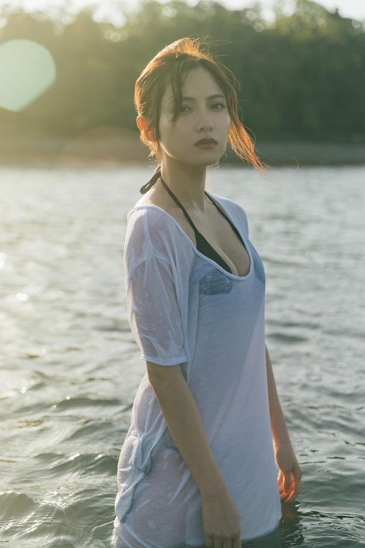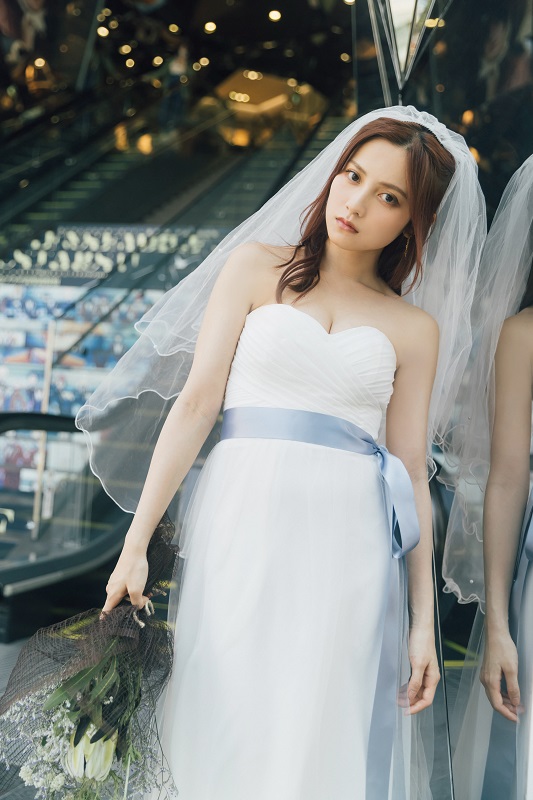 本誌ではウエディングドレス姿も披露しているが、「表参道をウエディングドレスで走ったんですけど、まあ人通りが少なくないので周りの視線が!恥ずかしくて!」と苦笑い。砂丘での撮影では、「撮影時期的にはまだそんなに暑い時期ではなかったんですけど、やっぱり砂が太陽の光を吸収しているので裸足で走り回るのがなかなかに熱くて(笑)。最後はまさかの海に入水(笑)。これまだ春先の撮影なので海の水もめちゃくちゃ冷たくて。今回は「逃げる」がテーマの撮影だったんですけど、私今この海から逃げたい…って思うくらい冷たかったです」と大変だったエピソードを紹介した。