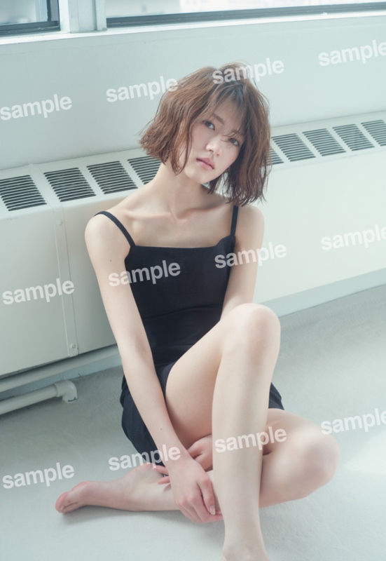 写真集にランダム封入される特典ポストカードは 7 月 12 日に写真集公式InstagramとTwitterと Oggi.jp で6種類すべて公開する予定となっているが、今回1点のみ、上・白ニット&下・ランジェリーの美脚写真を先行公開した。