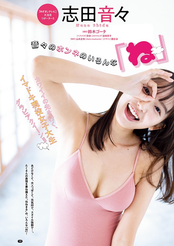 巻中グラビアには、『めざましテレビ』(フジテレビ系)のイマドキガールとして活躍中の志田音々さんが登場。あどけなさの中に大人らしさなどさまざまな表情のグラビアを披露している。