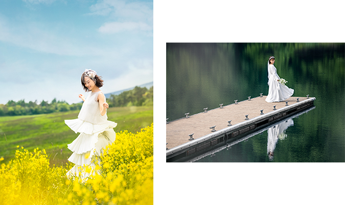 また、今回着用したドレスの中では「湖で着た袖ありドレスが清楚で可憐な感じがして一番好きです。ドレスにカチューシャを合わせていたのが驚きでしたが、凄く可愛くて素敵でした!」とお気に入りポイントを教えてくれた。