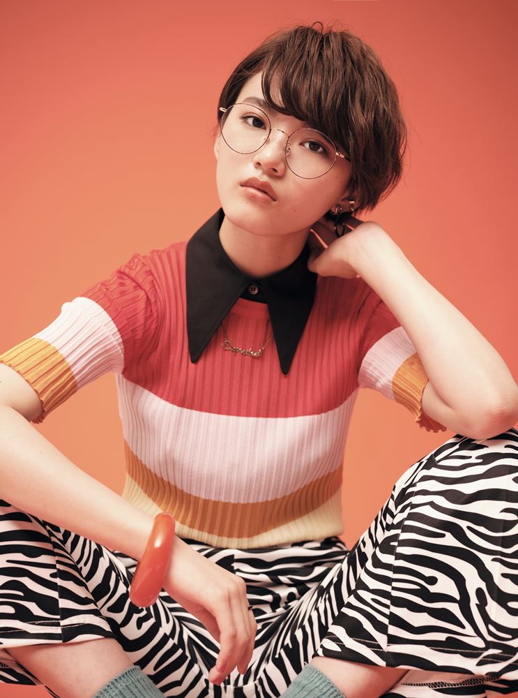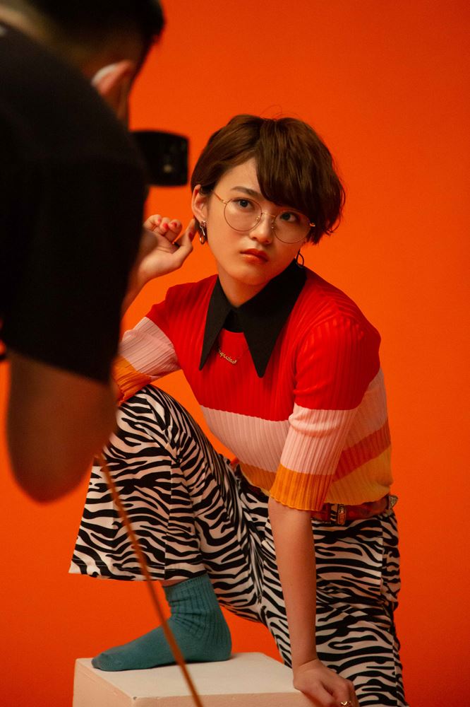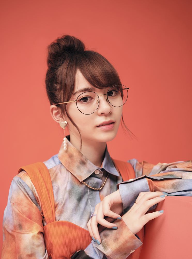 乱視なので、普段は疲れた時に見えにくくなり始めたらメガネを使っています。メガネの好きなところは、顔の余白を埋めてくれて撮影に普段よりも自信を持って挑めるので、メガネのある衣装がもともと好きでした。なので、今日はとっても楽しかったです!