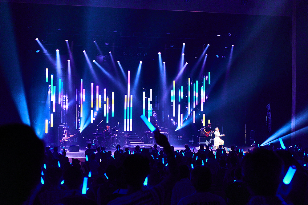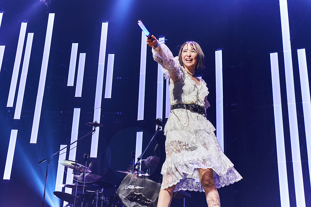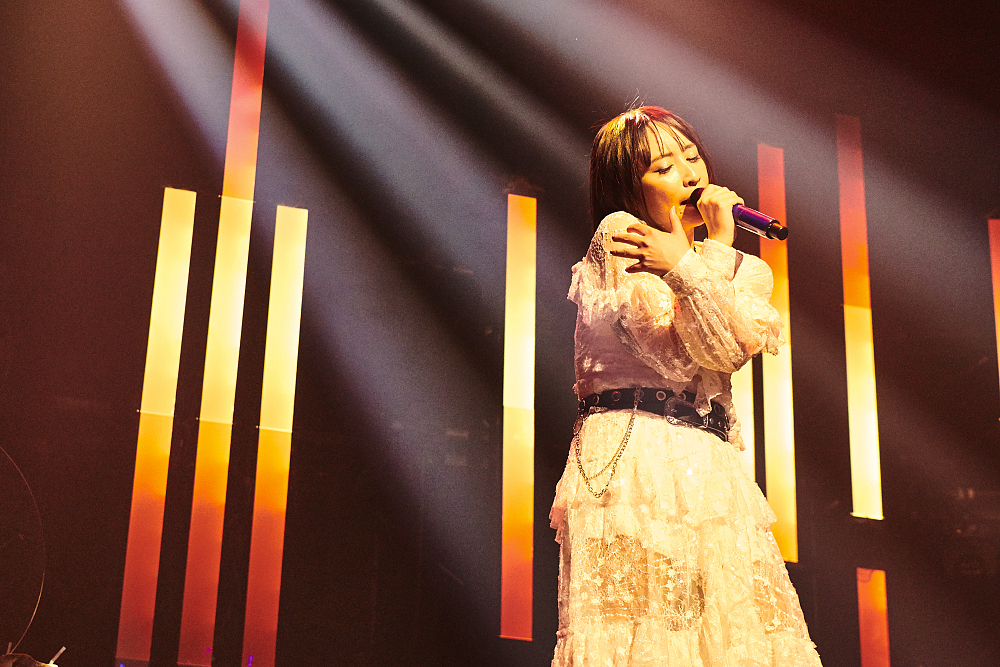 中盤には、疾走感あふれるロックナンバー『Contradiction』『MY JUDGEMENT』『GENESIS』をバンドメンバーと息の合った、圧巻の歌唱力とパフォーマンスで魅了した。声を出しての声援が出来ない中、サイリウム・ライトを振りかざし、ステージと客席とが一体となった瞬間が非常に印象的だった。