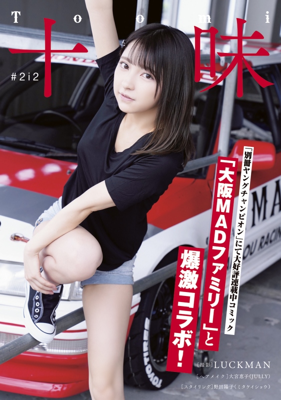 誌面では、別冊ヤングチャンピオンにて連載中の漫画「大阪MADファミリー」とのクールかつ大胆なコラボグラビアを披露している。