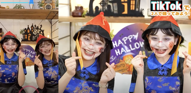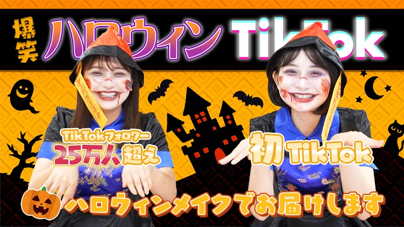今回23日に配信した動画では、所属事務所の後輩であり、TikTok のフォロワーが25万人を越えるタレントの速瀬愛さんをゲストに迎え、ハロウィンメイクを施した二人がTikTokに挑戦する様子を配信している。