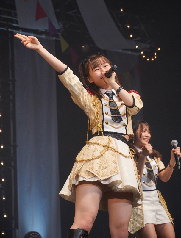 後半は白い衣装にチェンジ。『世界で一番かわいいアイドル』をはじめ、女の子らしい可愛いナンバーを次々と繰り出す。そして『二の足Dancing』『Be lonely together』といった盛り上げ曲でライブはクライマックスへ、