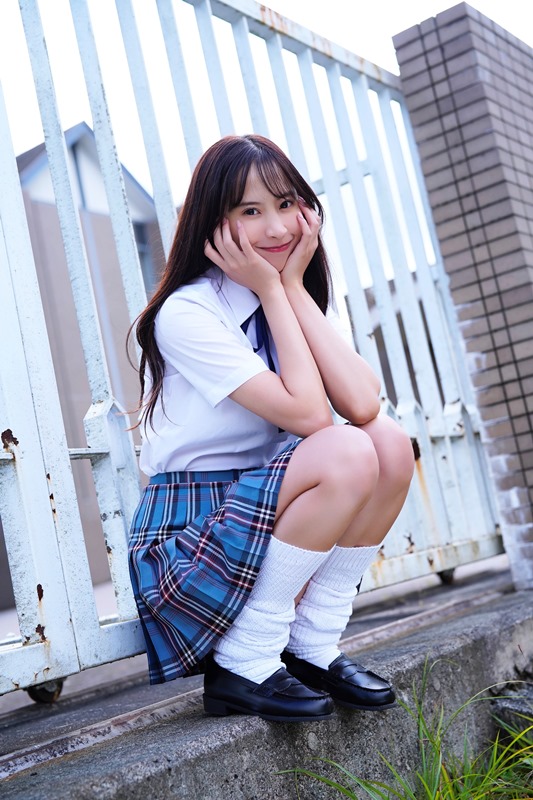 お気に入りの衣装は「白の水着とパーカー着たスポーティな水着がお気に入りです! やっぱり白の水着は王道で着てみたい!と思ってた衣装なので着れて嬉しいです(笑)。パーカーの衣装は個人的にスポーティーで私服でも着たいな?ってくらい好みでした…!(笑) あと、もちろん現役女子高生なので制服もお気に入りで、ルーズソックスも履きました!! ほぼお気に入りですね!」と笑った。