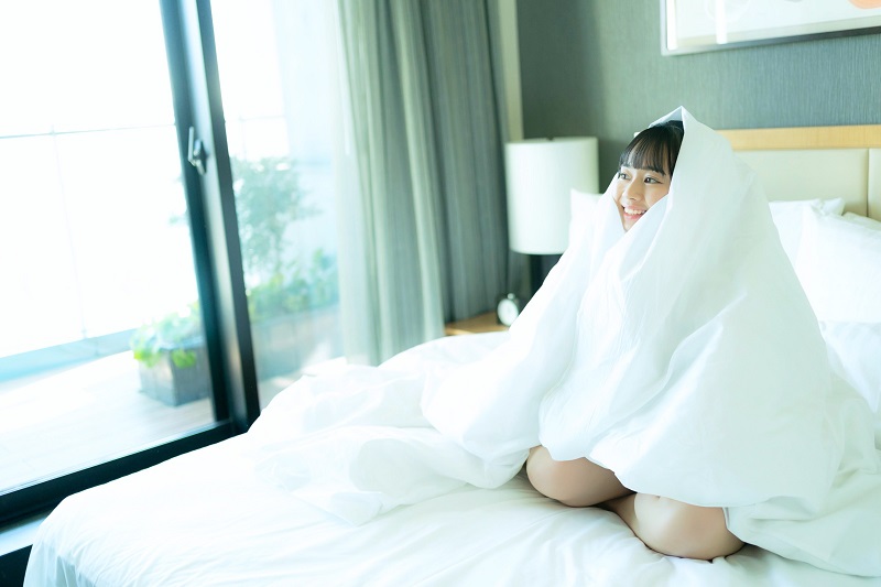 「モーニングシーンの撮影はパンケーキがあったりサラダがあったりすごいお洒落で……。自分の普段の朝ごはんとはかなり違いました(笑)。全体的に大人っぽい表情を作っているので、普段のアイドルスマイルではない私がたくさん見れると思います!」と内容を紹介した。