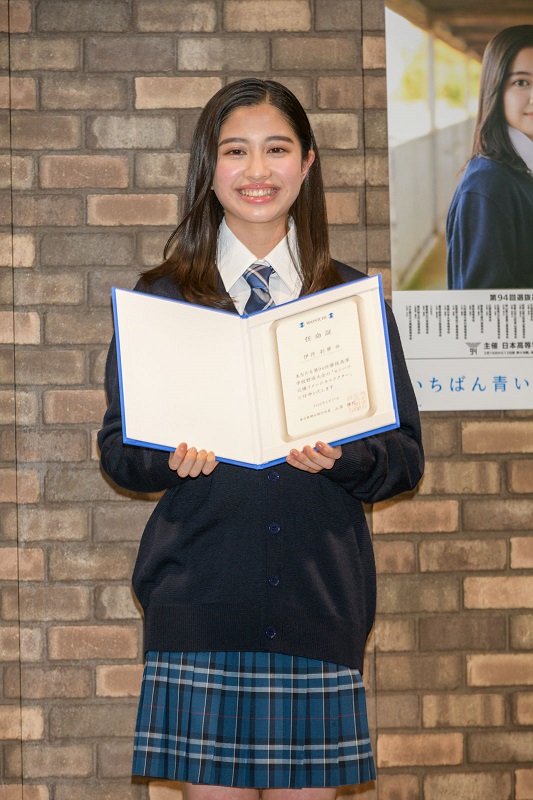 女優でモデルの伊丹彩華(16歳)が「第94回選抜高校野球大会」のイメージキャラクターに選ばれ、17日、毎日ホールにて、応援ポスターとともにお披露目された。