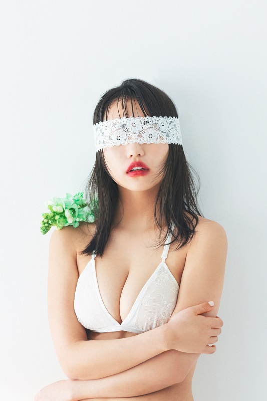 今回のカレンダーには、あどけない表情で笑っている等身大の彼女がいるかと思えば、クールな大人びた表情、女性らしい柔らかい表情。さらには、彼女自身がその世界観に入るのに憧れていたというフォトグラファーの大辻隆広氏が創り出す世界観「俺なりのエロ」をテーマとした、水着で肩に花をあしらい目隠しをした、”美とエロの共存”が実現した大胆ショットも収められている。