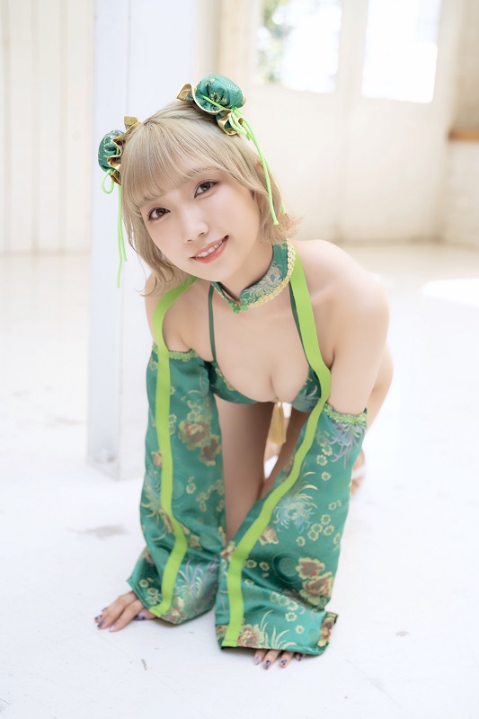 「『腹ペコ聖女とまんぷく魔女の異世界スローライフ!』という作品の、見習い聖女・エミリアのコスプレをさせていただいたのですが、普段あまり幼い見た目のキャラをやることがなかったので、メイクさんにたくさん相談しながら、できるだけ幼く見えるように、アイメイクなどはこだわりました。魔女は川瀬もえちゃんがやっていたのですが、初めて二人での撮影だったので新鮮でとても楽しかったです!」と撮影を満足そうに振り返った。