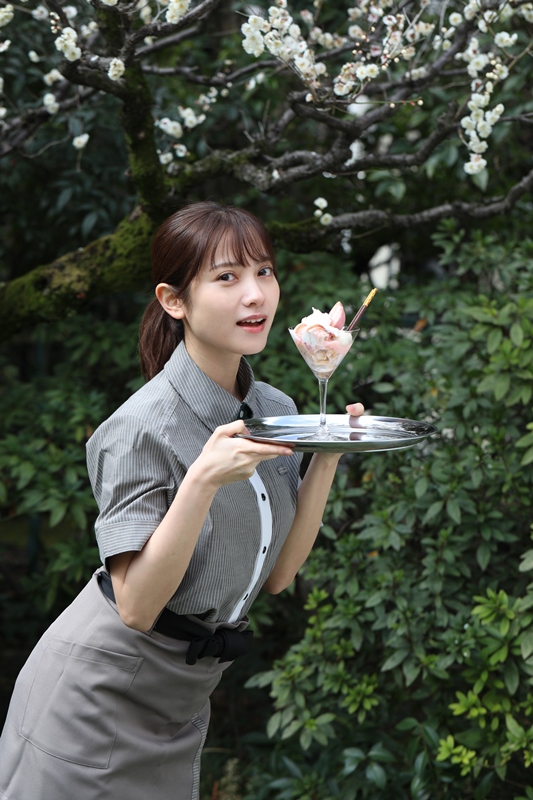 撮影中には現場に作者の石原まこちん氏が訪れたとのこと。「ご挨拶させていただいて、撮影の合間に少しお話もさせていただいたりして。そしたら漫画のほうで私を出したいと言ってくださって、今回のスピリッツさんに掲載されている『THE3名様』の漫画のほうで、私がウェイトレス役で出てるんです!すごくないですか?めちゃくちゃ可愛く描いていただいて感動です!ありがとうございます!」と感激を表した。