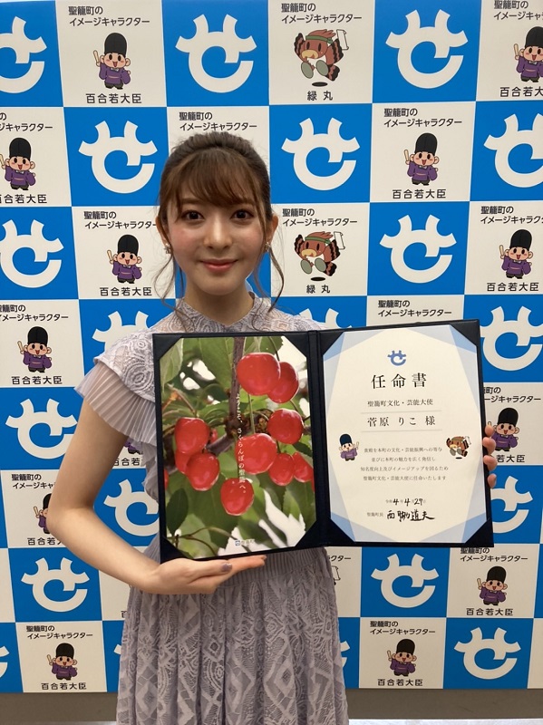 タレントの菅原りこさんが新潟県聖籠町の文化・芸能大使に就任し、27日、同町内で行われた任命式に登壇した。