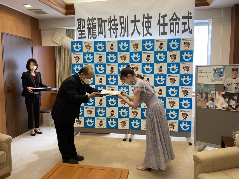 そして大使しての意気込みとして「『さくらんぼ』や『ぶどう』は、季節ごとに違う品種を楽しめるくらい充実してるので、美味しいくだものやそれ以外にも名産物など街の魅力を積極的に発信して住民の方々と一緒に聖籠町を盛り上げて、少しでも聖籠町に恩返しができるように頑張って参りたいです」とアピールした。。