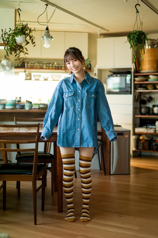 意外な発見もあったようで「カメラマンさんに、その動きゆらゆらだけの独特な動きだよね!って自分で気づかなかった癖を見つけていただいてびっくりしました、、、。思い返してみるといままでたくさんしていたし、前回のヤンジャンの誌面でもしていた気がします!(笑) 腕を体の後ろから回して?反対の手首を掴むってゆう、文字にすると難しい動きをよくしちゃってるみたいです!(笑)ぜひみつけてみてください!」と語りかけた。