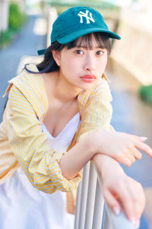今回の誌面について、特にお気に入りの衣装は「全部気に入ってたのですが、最後のページのカラフルなボーダーの衣装がお気に入りです! ほかの衣装では柄物は今回なくてこれだけ、可愛らしい色合いで可愛い!!と思ってたのでお気に入りでした! ポニーテールとも相性いいなと思ってます(笑)」とコメントした。