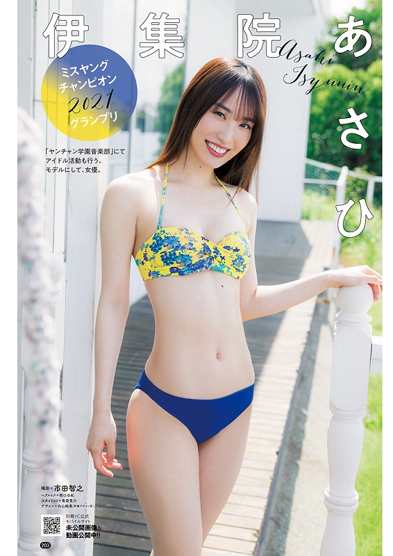 誌面で伊集院さんはスタイリッシュなビキニ姿を披露している。また同誌では、ヤンチャン学園NAGOYAの金城詩織さん、黒咲アリスさん、小鹿あかりさんも登場。フレッシュなセーラー服姿を見せている。
