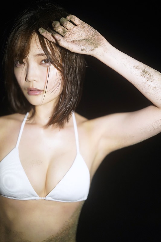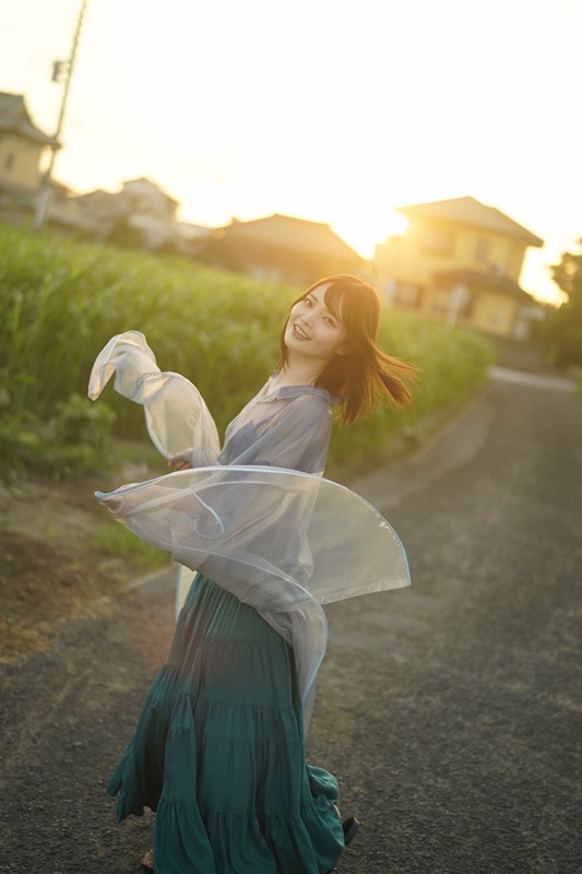 撮影では「衣装も表情も含めアンニュイな雰囲気が多かった気がします」と振り返る。「今回、はじめて夜の海での撮影もあって、海に飲み込まれそうで怖かったですが撮影自体は凄く楽しかったです! あと畑の近くで撮影した時、蚊に7箇所さされて1日の蚊に刺され記録更新しました」と笑った。